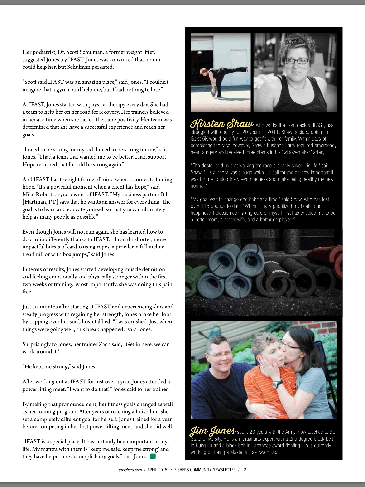 “Scott said iFAST was an amazing place,” says Jones, “I couldn’t imagine that a gym could help me, but I had nothing to lose.”
